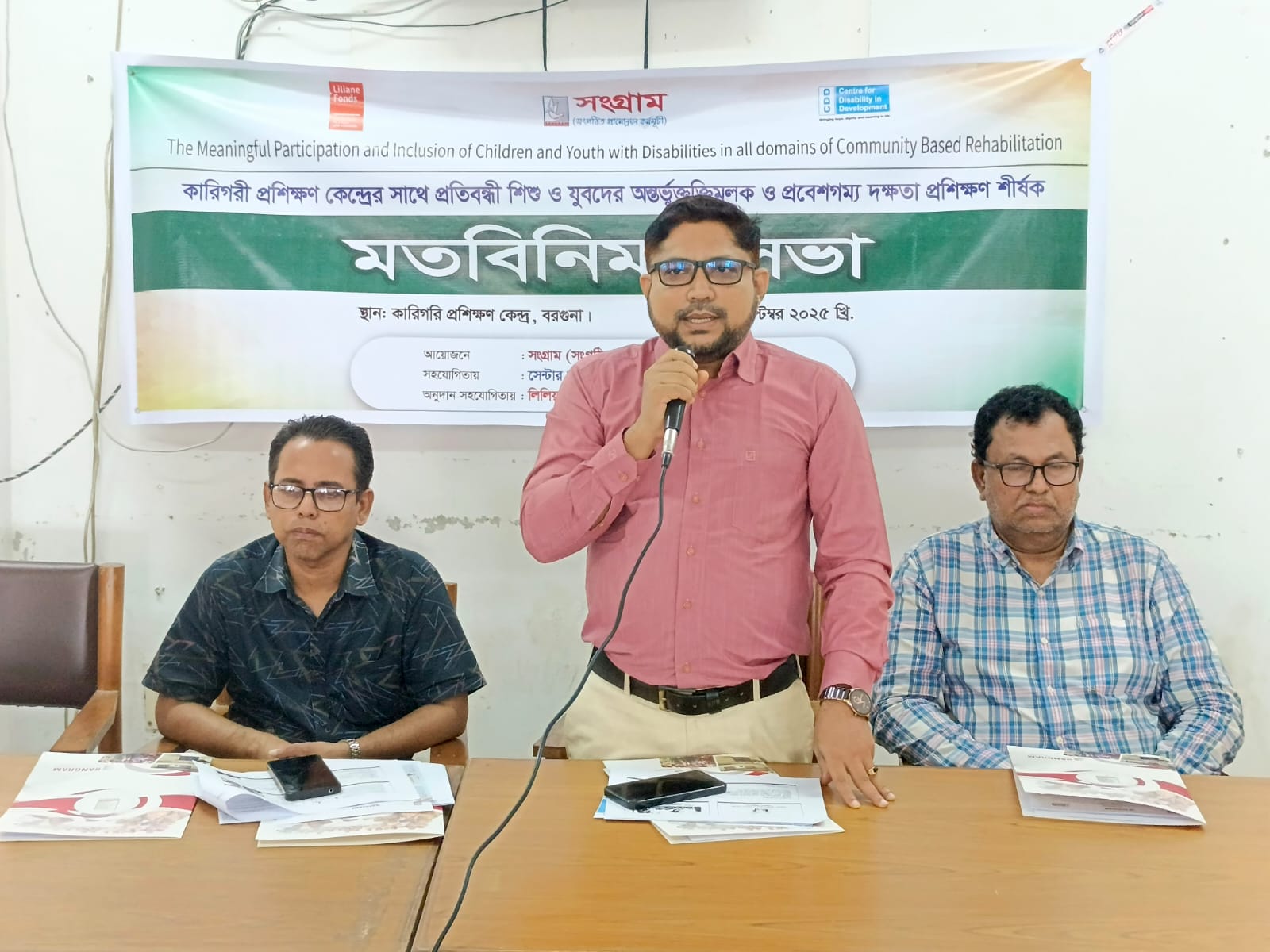 Md. Sanaullah Riyad, Barguna ::  A discussion meeting on inclusive and accessible skills training for disabled children and youth was held with the Technical Training Center.