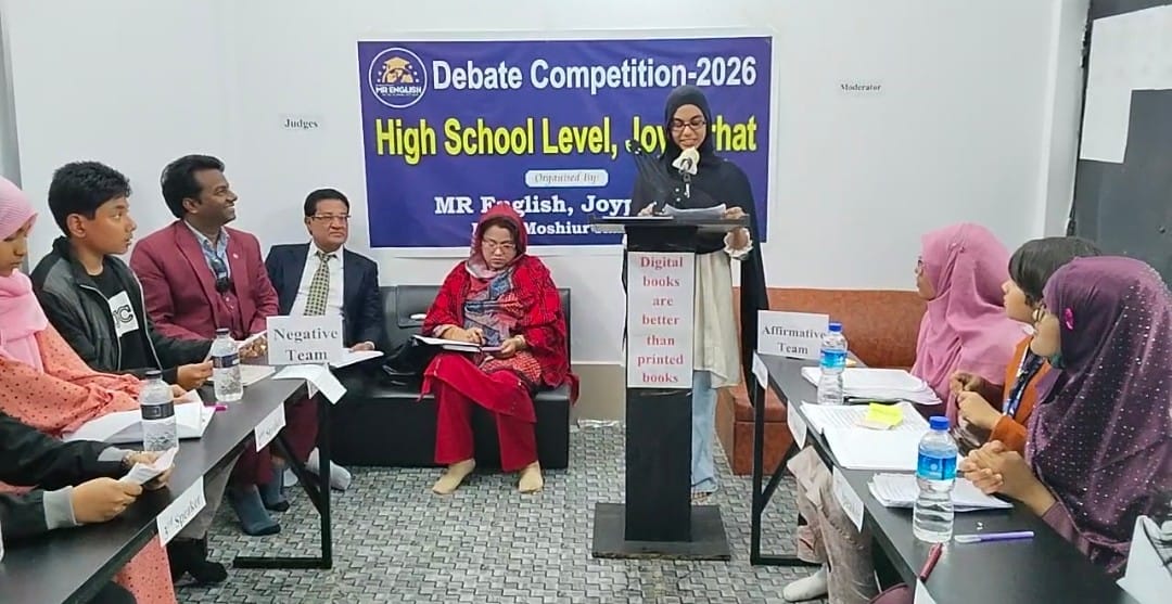 Moshiur Rahman Khan, Joypurhat:: An English debate competition was held in Joypurhat on Friday afternoon (February 7, 2026) under the initiative of MR English Institute, with the participation of students from various schools across the district.