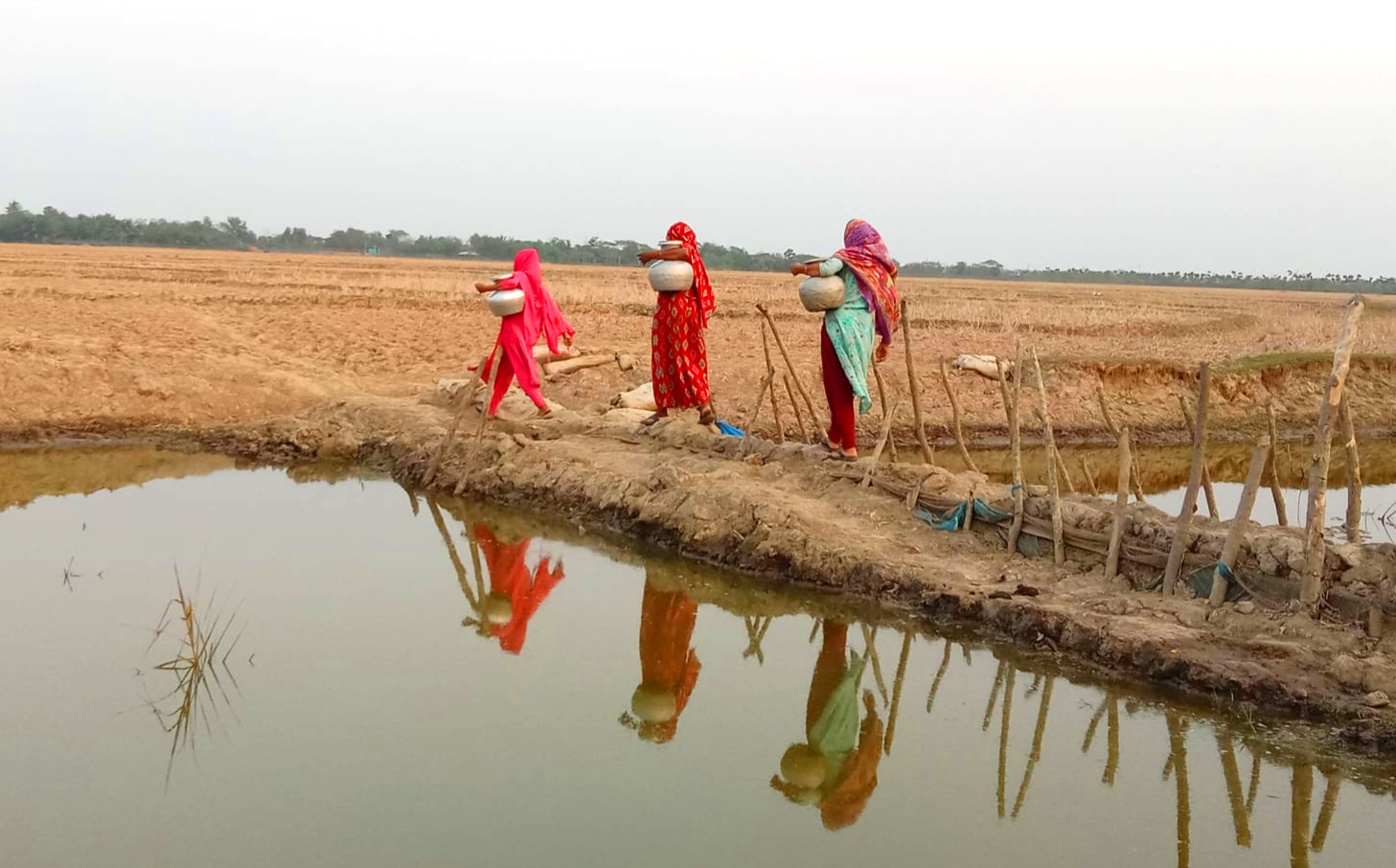 In Koyra Upojela Maheshwaripur Union, residents of at least 10 villages depend on ponds for drinking water. Women members of households often walk long distances carrying pitchers to collect water. Similar conditions prevail in South Bedkashi, Bagali, Maharajpur and Amadi Union, where freshwater sources are being depleted due to salinity intrusion.